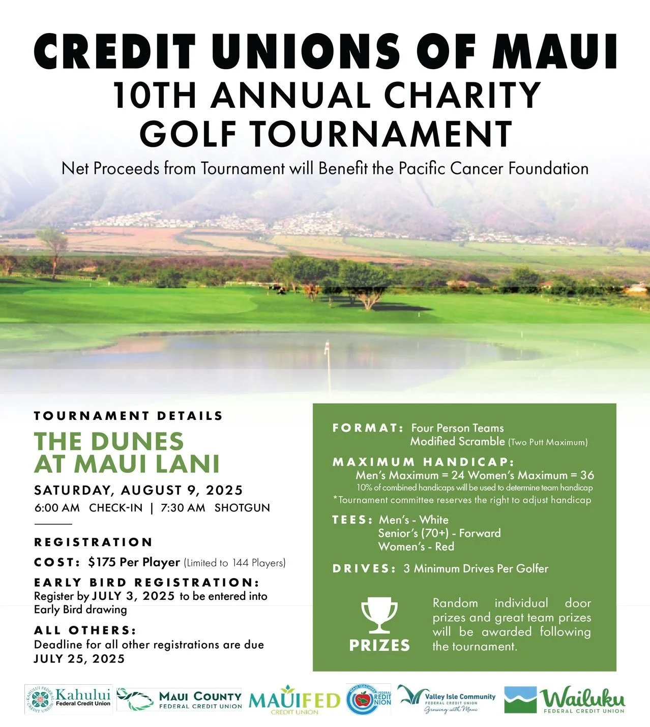 Thank you for your support of our 10th Annual Charity Golf Tournament to benefit Pacific Cancer Foundation. As a corporate or hole sponsor, your company will be uniquely recognized for your generous donation.